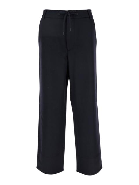 Moncler Men Blue Pants With Drawstring Elastic Waist And Logo Patch On The Rear In Wool Man