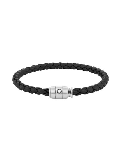 Montblanc Steel & Black Leather Bracelet, Size 60
