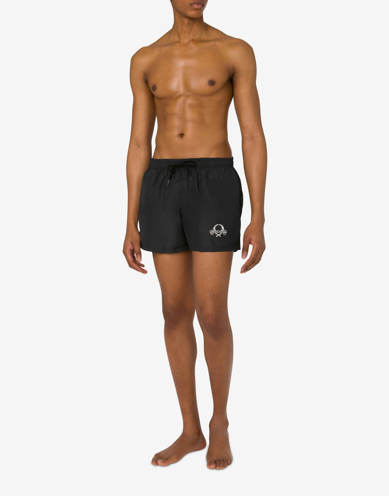 Make a splash with Moschino swimwear, a standout segment in our exclusive men's clothing collection. Each swimwear piece from Moschino showcases bold, playful designs and superior craftsmanship, perfect for the modern man who values both style and comfort. Explore our handpicked assortment of swim trunks and board shorts, featuring iconic prints and vibrant colors that set you apart on any beach or poolside.