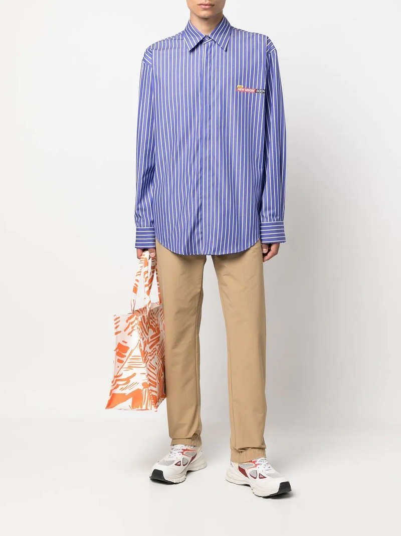 Light blue striped cotton oxford shirt with "Sketched Bunnies" print