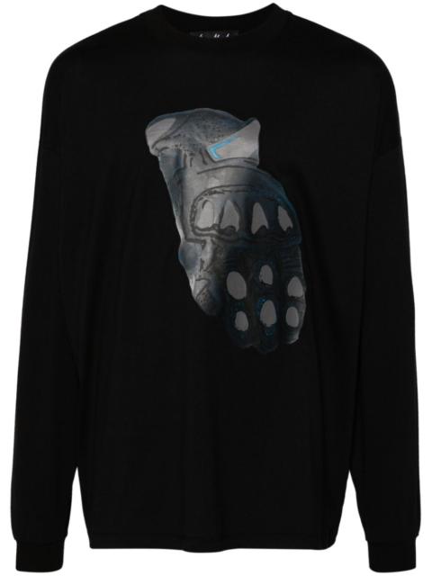 Black cotton drill overshirt with "Sketched Bunnies" print