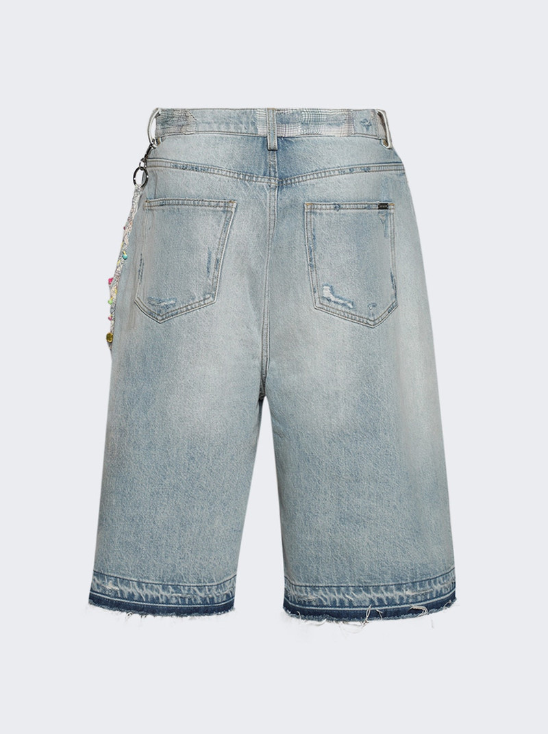 Thrashed Baggy 5 Pocket Shorts Light Wash Blue