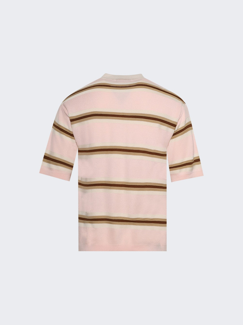 Knit Striped Polo Top Soft Pink Stripe Knitwear