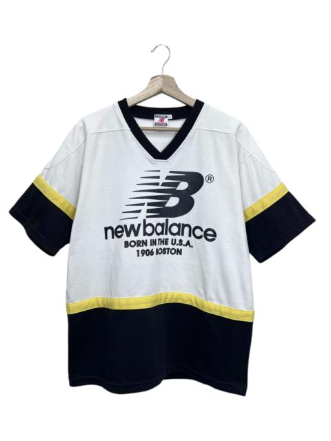 Vintage NEW BALANCE Big Logo V-neck Split T-Shirt Y2K HipHop