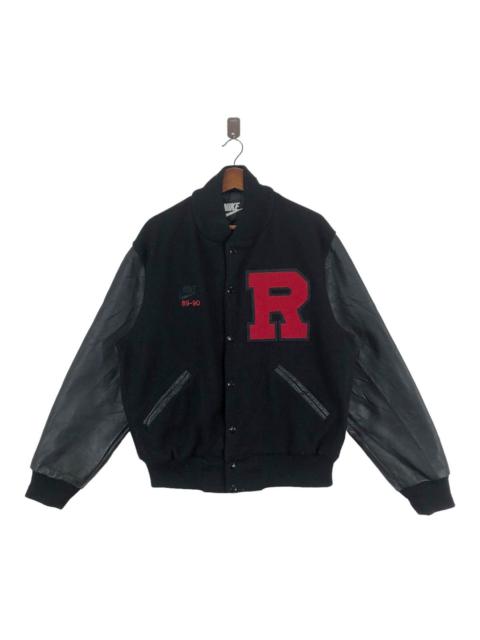 VINTAGE NIKE VARSITY LEATHER BLACK BOMBER JACKET