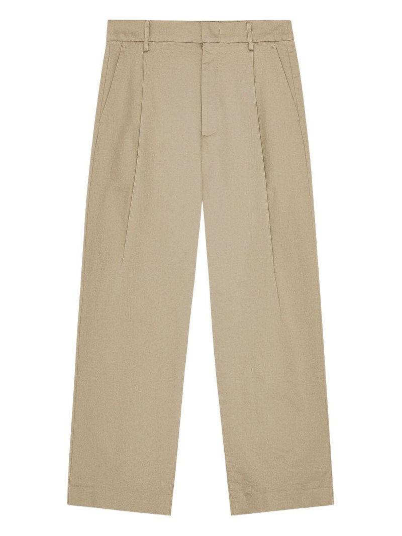 Kay 1420 Straight-Leg Pleated Organic Cotton-Blend Twill Trousers Brown