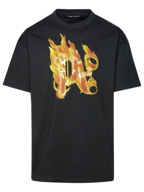 Palm Angels 'Burning Monogram' Black Cotton T-Shirt Men