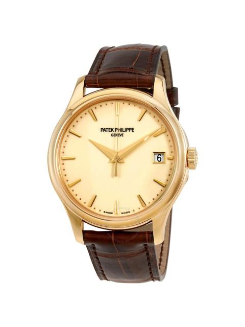 Patek Philippe Calatrava Ivory Dial 18kt Yellow Gold Brown Leather Men's Watch 5227J-001