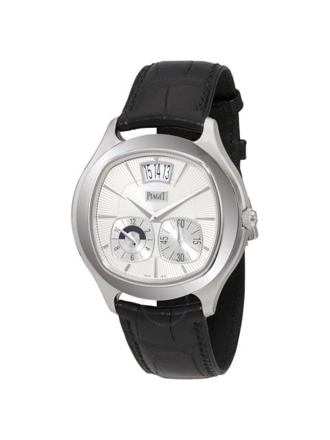Piaget Emperador Coussin Silver Dial Black Leather Automatic Men's Watch GOA32016