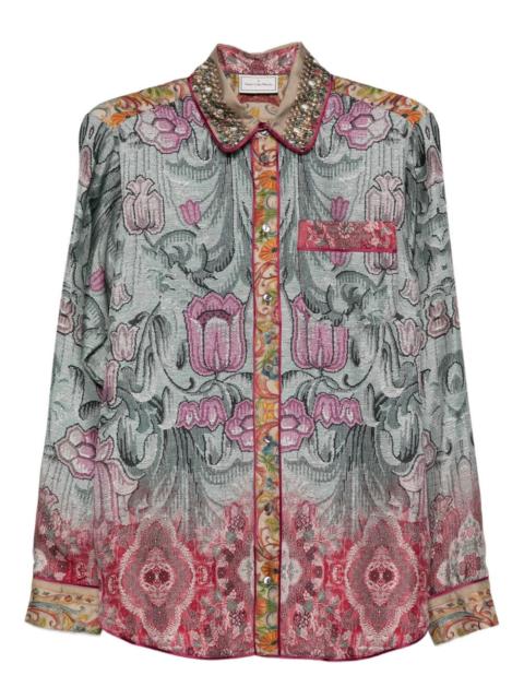 Pierre-Louis Mascia is a French illustrator-turned-designer known for transforming collage into richly layered, allover prints with striking visual clarity. Founded in 2007 in collaboration with the Uliassi brothers of historic Achille Pinto in Como, the label began with scarves and has since expanded into ready-to-wear and home collections. Mascia’s work balances sharp graphic precision with organic fluidity, fusing Bauhaus discipline and Rococo exuberance. Drawing inspiration from vintage textiles, books, and everyday details, his intuitive process creates functional pieces defined by bold color, intricate pattern, and controlled anarchy.