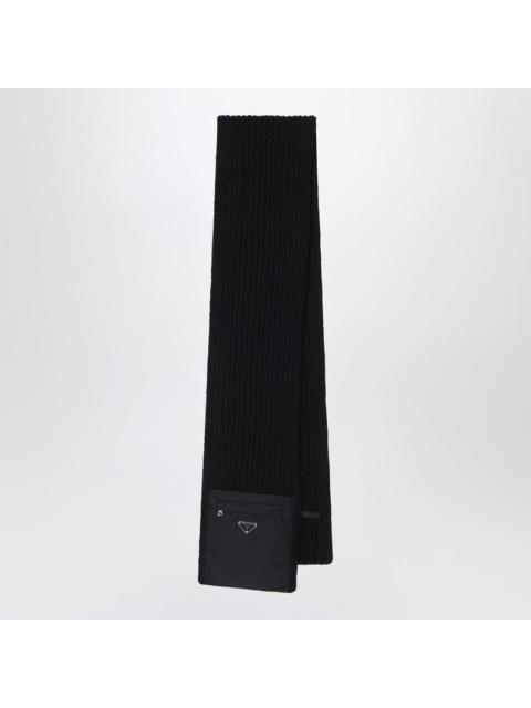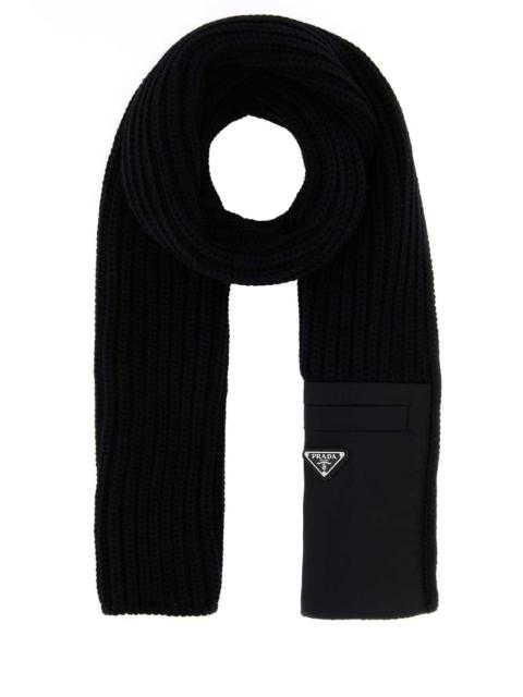 Prada Black Wool Scarf With Re-Nylon Pocket Men