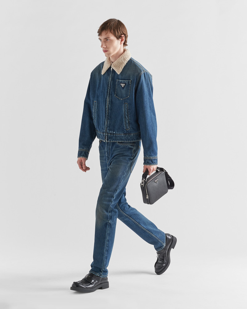 Explore the exclusive craftsmanship of Prada jeans, a standout in our luxury men's clothing collection. Each pair of Prada jeans embodies a seamless blend of modern aesthetics and timeless design, ideal for the discerning gentleman. Discover high-quality fabrics and impeccable tailoring that provide both comfort and style.