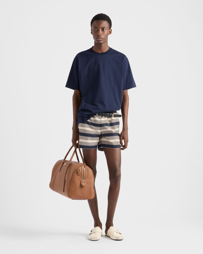 Discover the sophistication of Prada with our selection of clothing focused on tops designed for the modern man. Each piece reflects Prada's commitment to innovation and impeccable craftsmanship. Dive into our assortment where each item promises to elevate your wardrobe with a blend of classic luxury and contemporary style, exclusively catering to men's fashion needs.