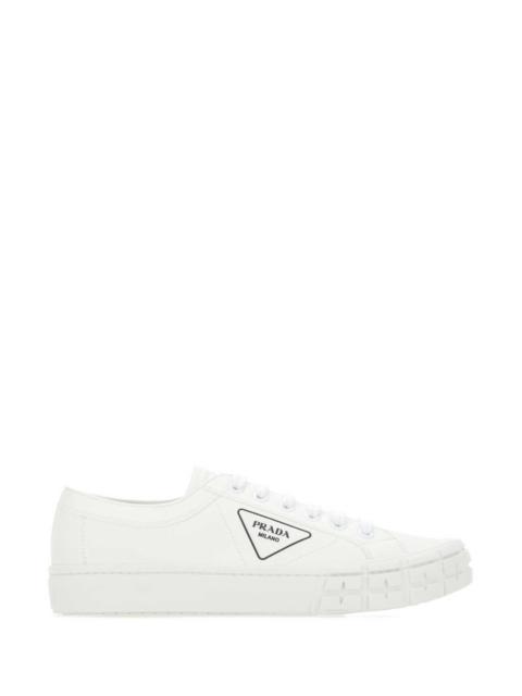Prada Men White Gabardine Wheel Sneakers