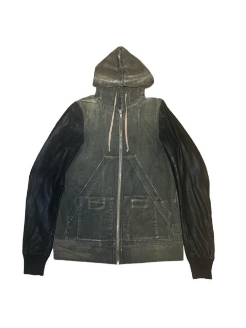 - Rick Owens DRKSHDWCoated Denim Leather-Sleeved Zip-Up