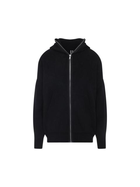 Rick Owens Men Black Hooded Sweatshirt With Front Zip Closure In Wool Man
