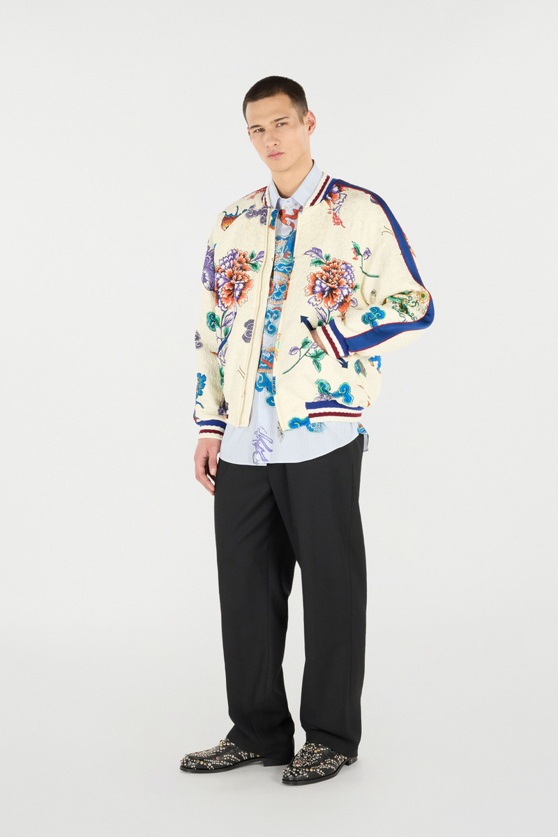 Broccato-print striped shirt