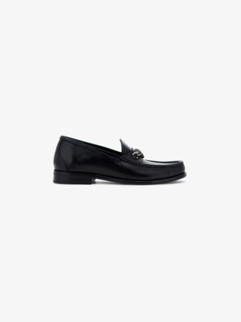 Dark Brown Crocodile-Effect Leather Slide Sandals
