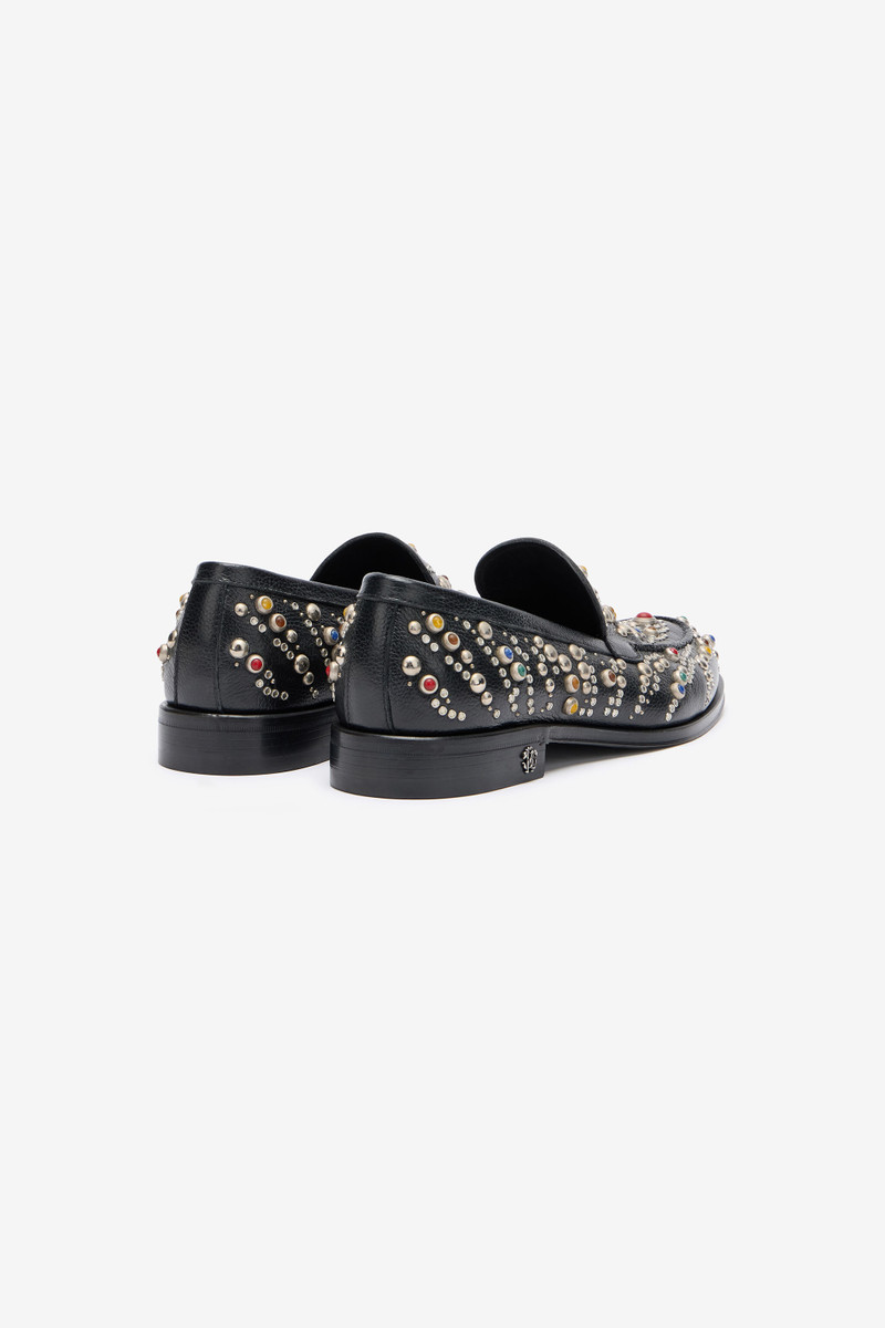 - Roberto CavalliBlack Loafers With Monogram Mirror Snake