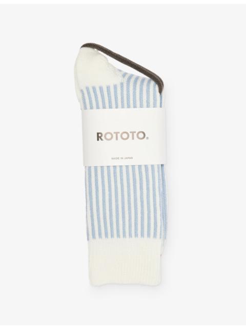 Rototo is a premium Japanese sock brand founded in 2014 by designer Daisuke Ishii in Nara Prefecture, Japan’s historic center of sock production. Guided by the philosophy of creating “lifelong consumables,” Rototo focuses on durability, comfort, and everyday pleasure. The brand blends traditional Japanese craftsmanship with modern design, using high-quality natural yarns such as organic cotton, merino wool, and linen. Produced in small batches on rare vintage knitting machines alongside modern technology, each pair reflects slow, artisanal processes and exceptional texture. Iconic styles like the Double Face Socks embody Rototo’s thoughtful, functional approach.