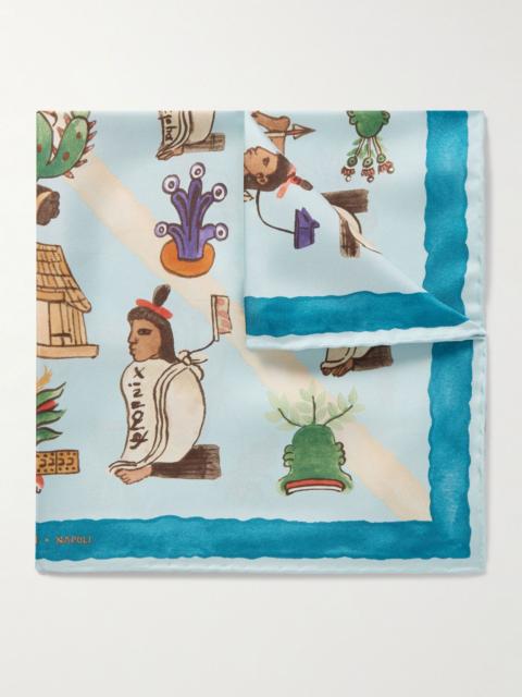 Mendoza Printed Silk-Twill Pocket Square Blue