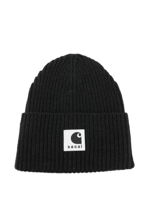 Sacai X Carhartt Wip Men Logo Wool Beanie