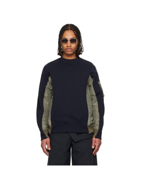 Navy & Khaki Sponge Sweat & Nylon Twill Sweatshirt