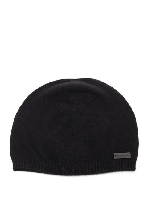 Saint Laurent Men Black Beanie With Logo Patch In Cashmere Man