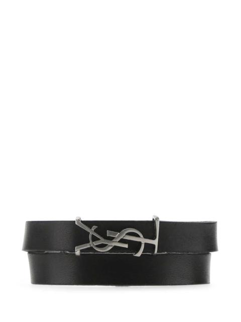 Saint Laurent Men Black Leather Opyum Bracelet