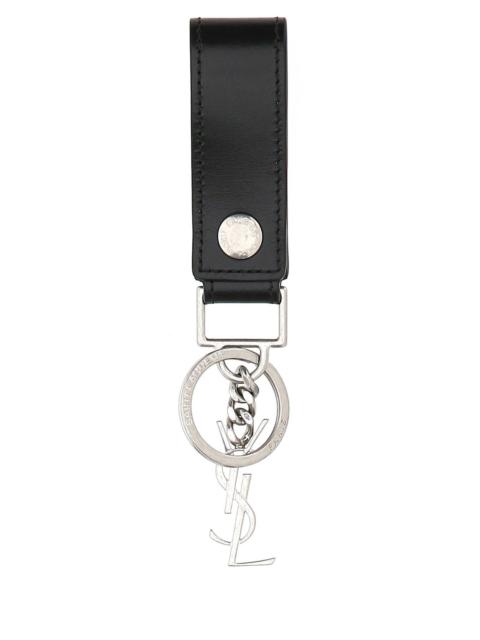 Saint Laurent Men Black Leather Monogram Key Ring
