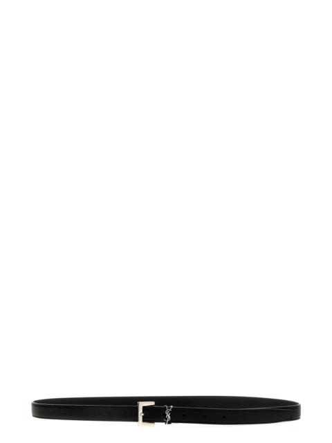Saint Laurent Men Black 'Cassandre' Belt With Logo Detail In Leather Man