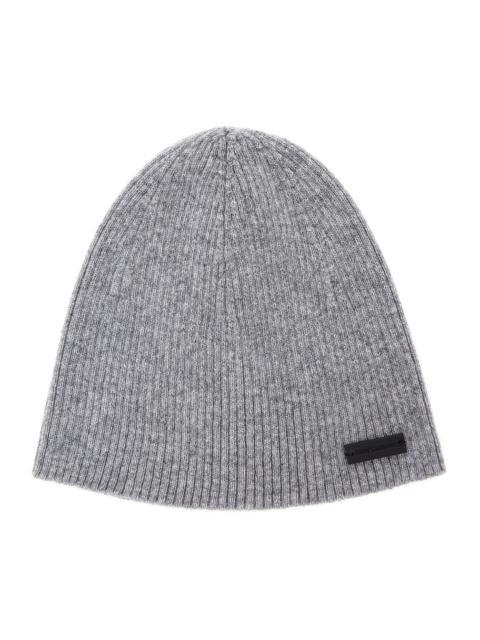 Saint Laurent Men Grye Beanie With Logo Patch In Cashmere Man