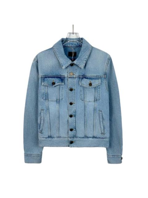 Saint Laurent Paris Light Wash Denim Jacket With Button Closures & Dual Chest Po