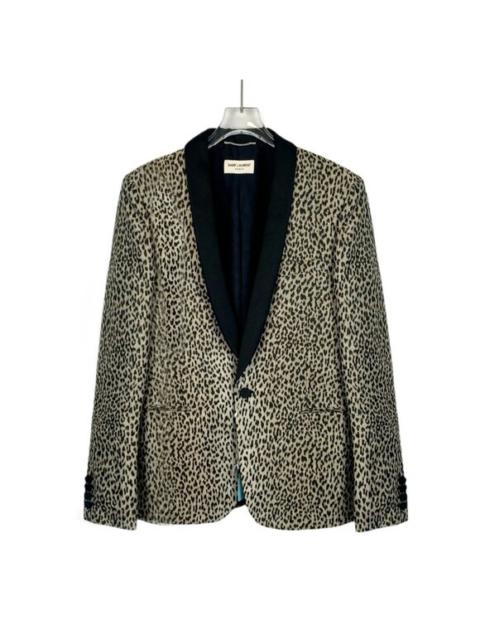 Saint Laurent Paris Leopard Print Blazer With Black Satin Shawl Lapel & Single B
