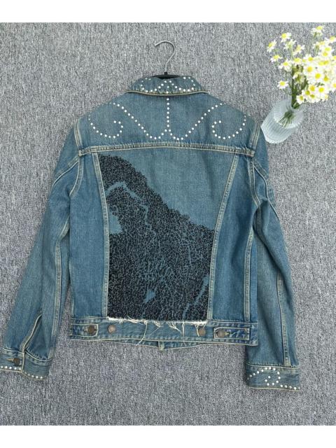 Saint Laurent slp15ss heavy blue rivet rhinestone denim jacket