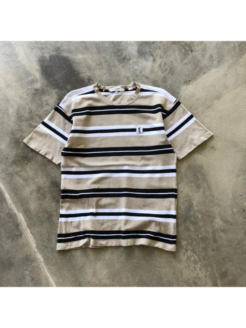 Vintage YSL Yves Saint Laurent Stripe Embroidery Logo Tshirt