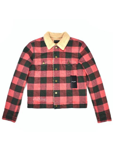 Saint Laurent Red Buffalo Plaid Shearling Trucker Jacket NWT