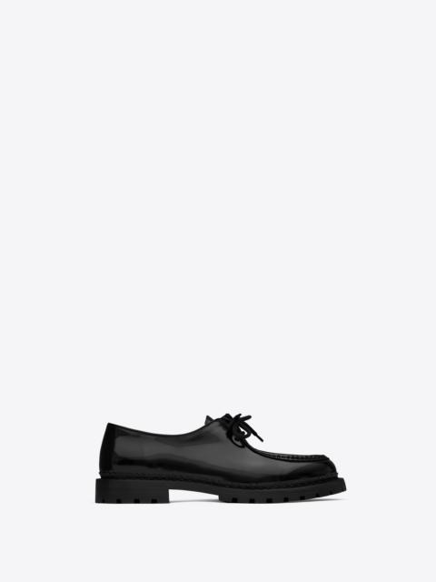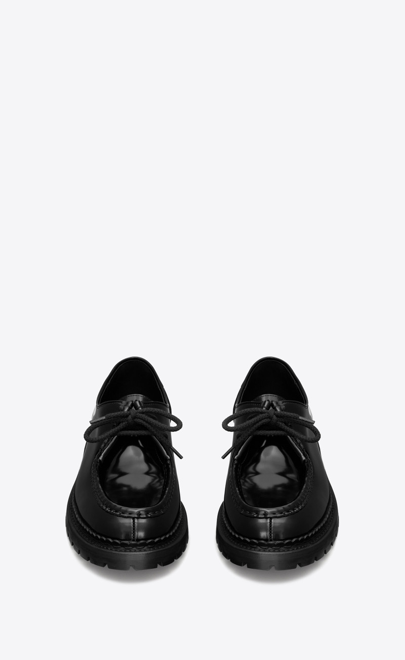 Step into sophistication with SAINT LAURENT lace-up shoes, an exceptional feature of our premium men's footwear collection. Each pair from SAINT LAURENT showcases a blend of contemporary design and timeless craftsmanship, ideal for those who value both style and comfort. Explore our exclusive assortment of lace-up shoes that promise to elevate your wardrobe with precision tailoring and luxurious materials.