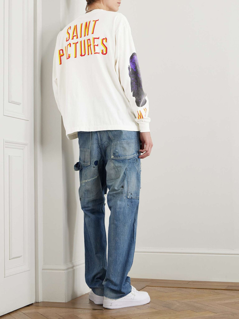 SAINT M××××××'s designs cater to the latest fashion trends but through the lens of its own unique style, which speaks to its increasing popularity. It was founded in 2020 by artist Cali Thornhill Dewitt and designer Yuta Hosokawa in a collaborative effort to create one-of-a-kind pieces. Their vintage-inspired designs are characterized by rebellious religious motifs and subtle messaging delivered through playful art and a dash of humor. Discover their staple pieces including varsity jackets, t-shirts, and hoodies from SAINT M×××××× here.