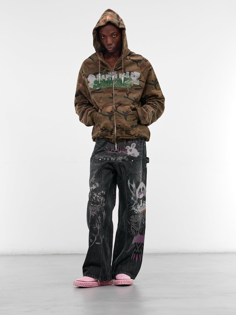 Black Denim Graffiti Carpenter's Pants