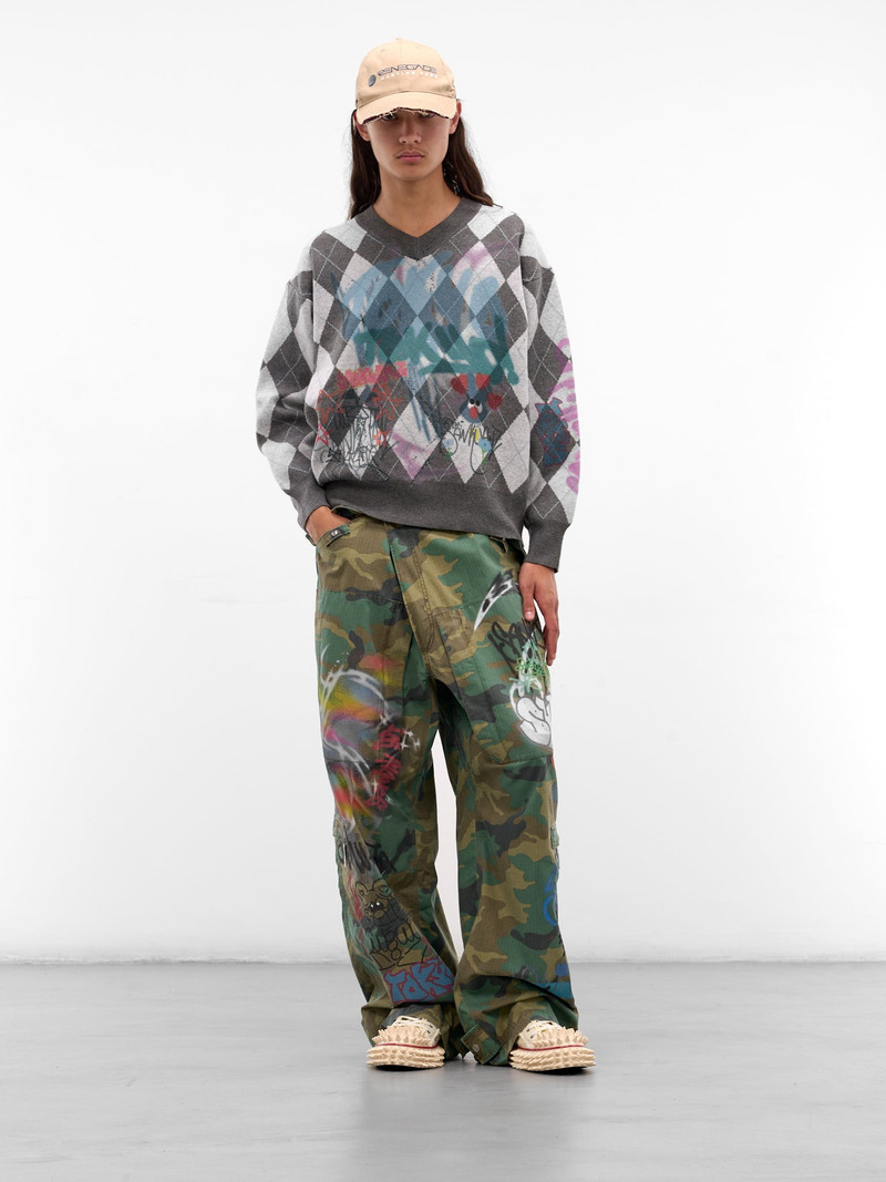 Gray Argyle Graffiti Sweater