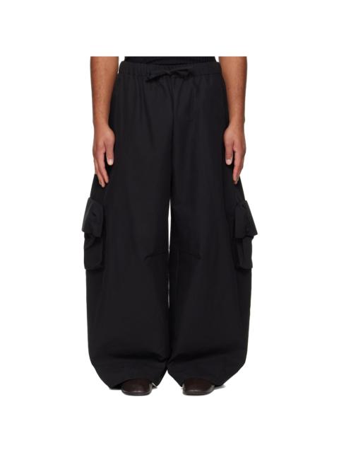 Black Multi Pocket Puddle Drawstring Cargo Pants