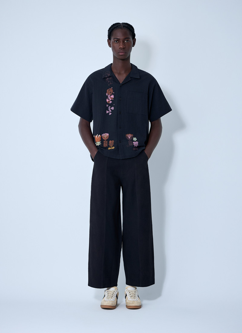 Founded in 2013, UK-based label Story mfg. proves that sustainable, anti-waste, and animal-friendly collections can be highly creative. Specializing in artful yet relaxed menswear, the brand advocates for consciousness and accountability in design. Its distinctive aesthetic features abstract embroideries, impressionistic sun-dying techniques, and a handmade charm, emphasizing free-spirited expression. Story mfg. is committed to transparency in dye, fabric, and crafting processes, often collaborating with independent artisans. The label's focus on sustainability and a slow design process results in enduring pieces, each telling a unique story, reflecting a deep respect for traditional making practices.