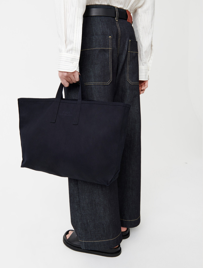 Explore the sleek functionality of Studio Nicholson tote bags, featured prominently in our array of luxury men's bags. Each Studio Nicholson piece is a testament to minimalist design and superior craftsmanship, perfect for the contemporary man who values both style and practicality.