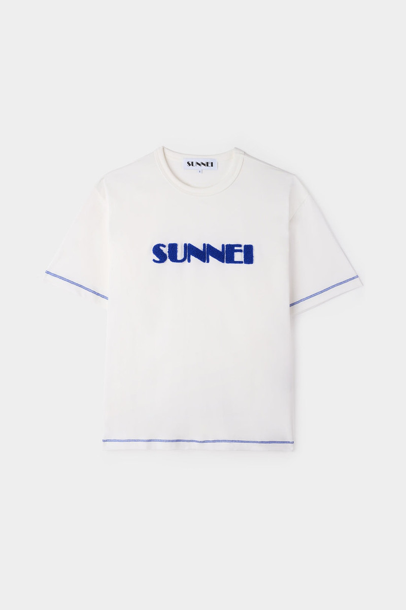 BIG LOGO BOUCLE CLASSIC T-SHIRT / off white & electric blue