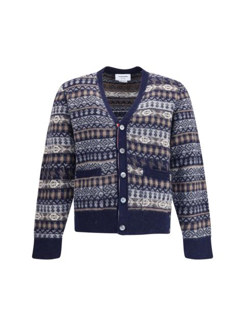 Thom Browne Men Classic V-Neck Cardigan In Fine Merino Wool W/ 4Bar Stripes