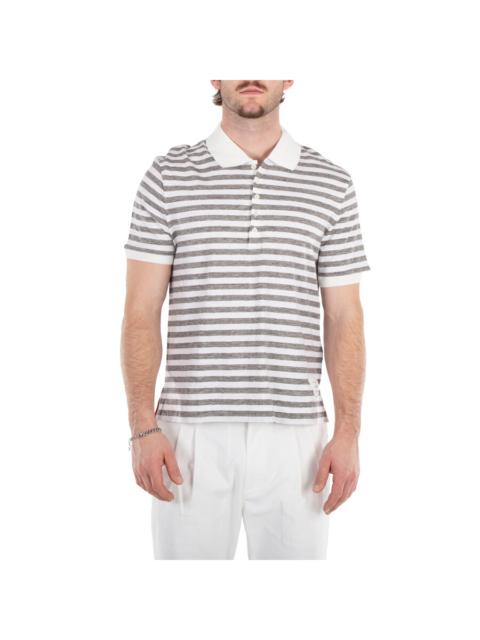 Thom Browne Short Sleeve Polo In Striped Linen Jersey