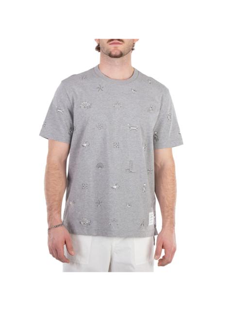 Thom Browne Men Grey Short Sleeve Crew Neck T-Shirt In Cotton Man
