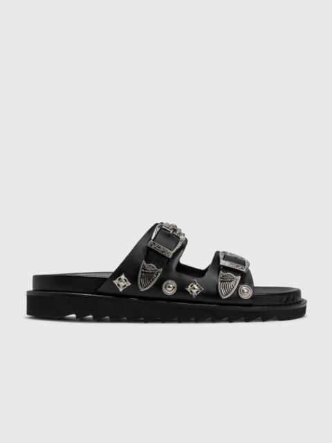 TOGA VIRILIS, the menswear division of Tokyo-based women’s line Toga Pulla, emerged from designer Yasuko Furuta’s passion for vintage fashion. Furuta, a graduate of ESMOD Japan and Paris, founded her label in Tokyo in 1997, naming it after the ancient Roman garment. Known for her bold, meticulous designs, she blends elements of androgyny and unexpected femininity with classic men's styles, harmonizing eras, themes, and references. TOGA VIRILIS features avant-garde details like super-detailed metallic belt buckles, suede leathers, and bolo ties, reflecting a rock 'n' roll aesthetic and a nod to the Wild West, all while bridging casual and formal contexts.