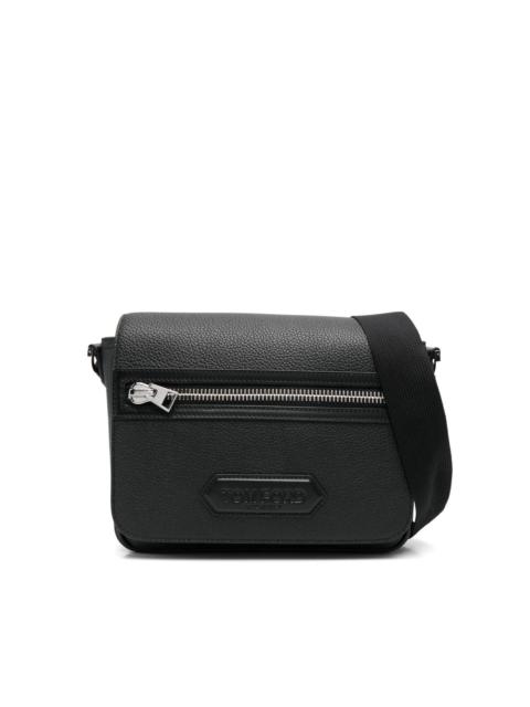 Tom Ford Men Black Leather Small Messenger Crossbody Bag
